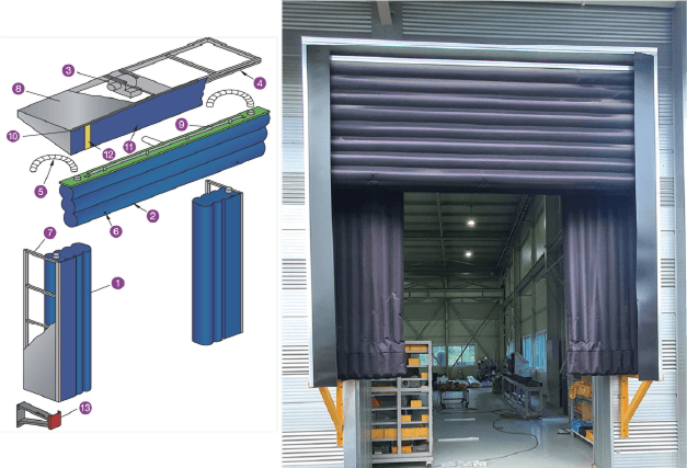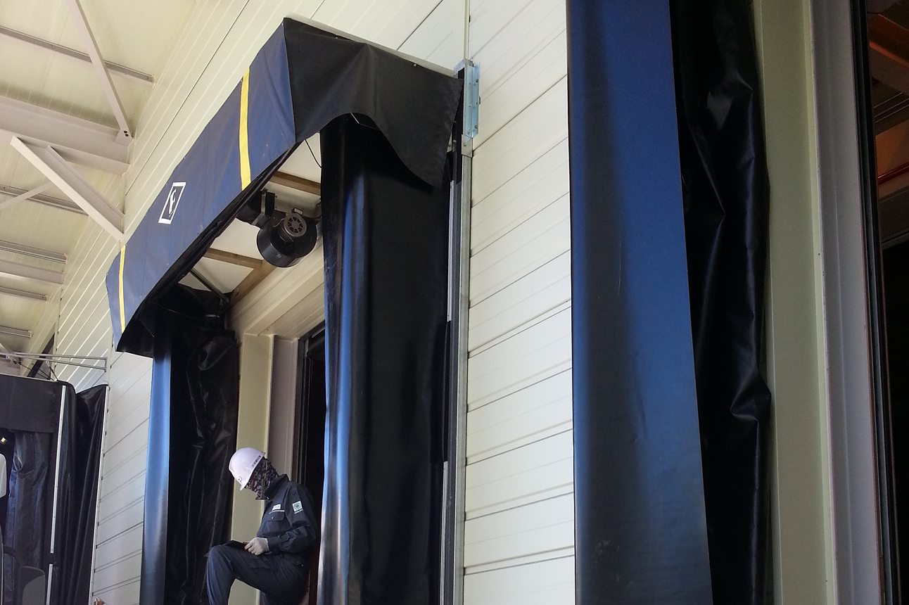 (shelter)이 공기 주입으로 부풀어 오르며 트럭과 하역구 사이의 틈을 막아줍니다. 이를 통해 외부 공기나 날씨로부터 하역 공간을 보호하고,
