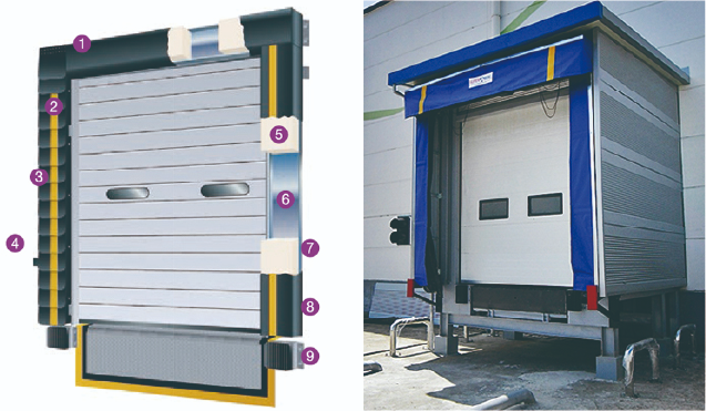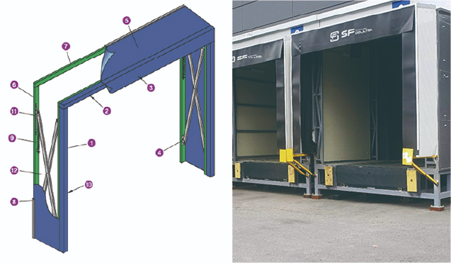 건물내부의 에너지 손실과 급격한 온도변화를 방지하기 위한 장치로 차량 적재함 내부의 공기와 건물내부의 공기를 연결하여 대류에 의한 열손실을 방지하는 역할을 합니다.