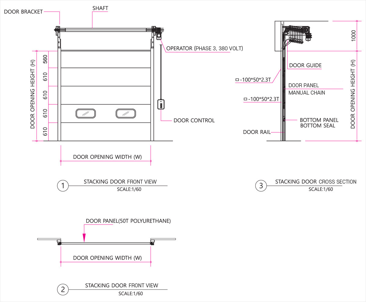Constructed with 50T/75T urethane panels; aluminum extrusion rails with inserted mohair allow smooth lateral panel movement, enhancing airtightness.